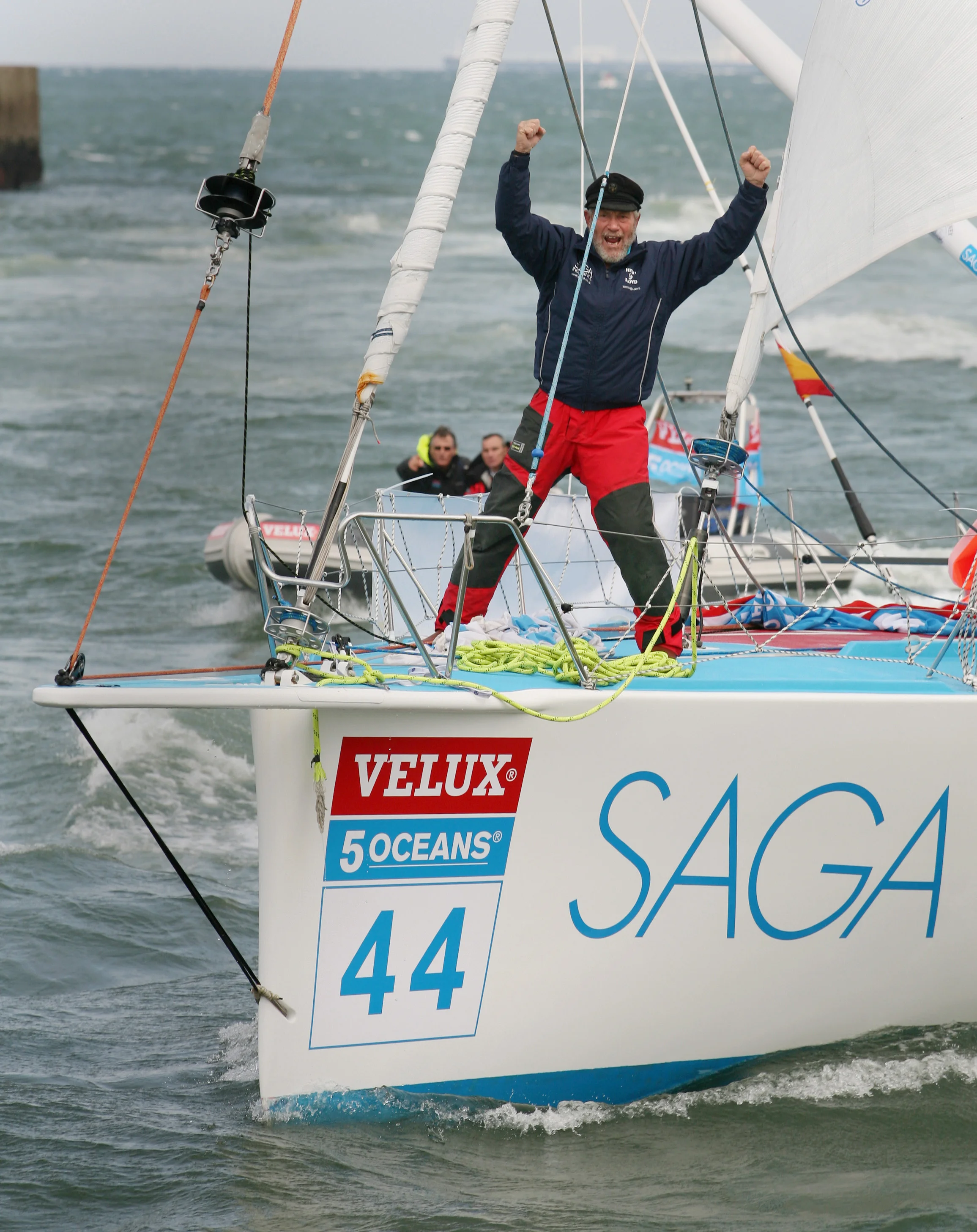 As the 2006 Velux5Oceans race came closer, RKJ became interested in entering, partly because he needed to draw a line in his life having lost his wife, and partly because people said that at 67 years of age he was too old to sail around the world, and certainly not in an Open 60 yacht. There was alos a curiosity to see how these modern boats behaved in thewatery Himalayas of the Southern Ocean. In May 2006 he bought "Fila" the boat that Giovanni Soldini had won the Around Alone Race in 1998 before it was re-named the Velux5oceans race. Having been Chairman of the BOC Challenge in 1982 and 1986, before that was re-christened Around Alone, RKJ found himself having to comply with a rule he had made himself in 1982, namely the need to qualify! He did this with a voyage to Halifax, Nova Scotia, and back and then started a major re-fit.